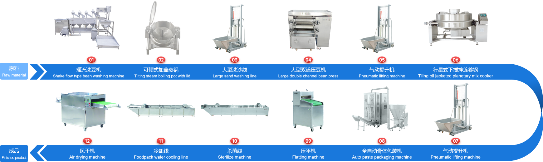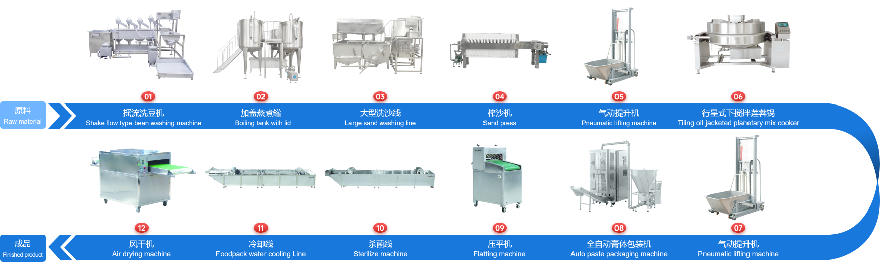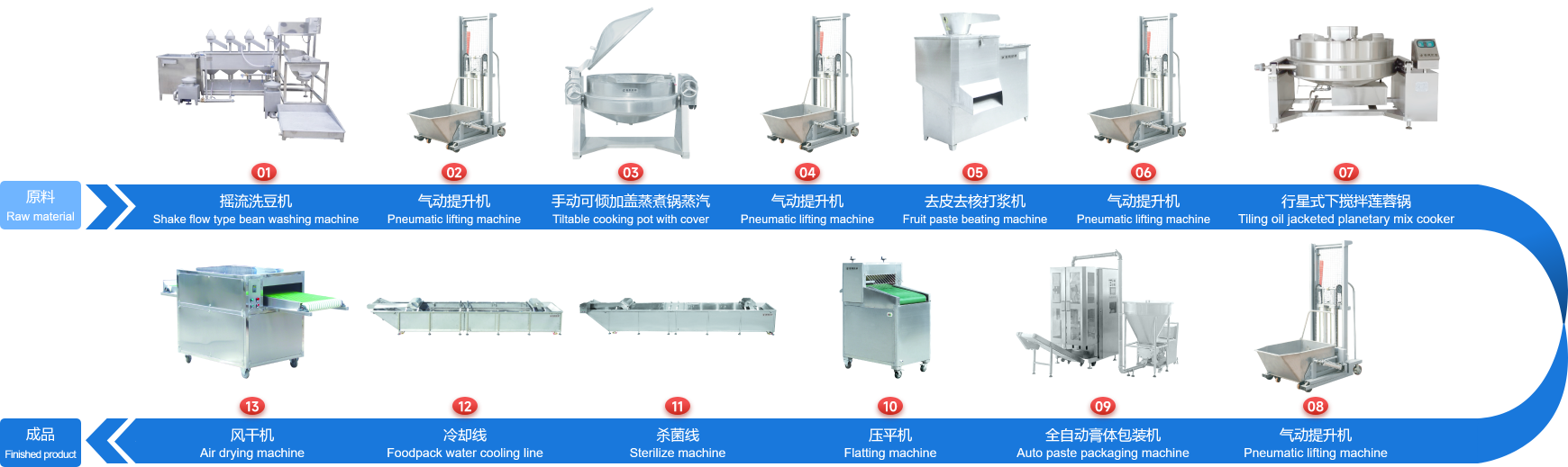 企業(yè)經多年研制開發(fā)的下攪拌可傾式蓮蓉鍋、下攪拌夾層鏟鍋、可傾式蒸煮鍋、去皮去核打漿機、立式熱抽真空包裝機、餡料風干壓平機、餡料冷卻線、江米條成型機、循環(huán)過濾油炸鍋、下出料脫油機等設備在國內同類設備中達到綠色環(huán)保標準,已報國家專利局和有關部門申請認證,成為企業(yè)的品牌產品,深受廣大客戶的支持和信賴。